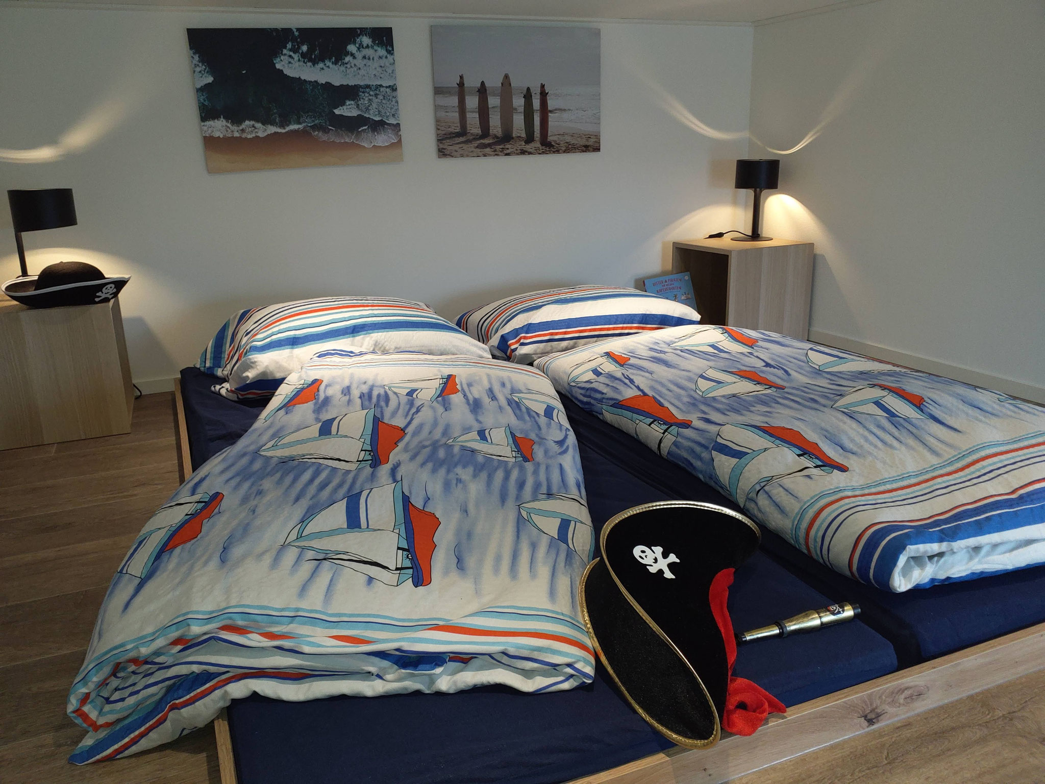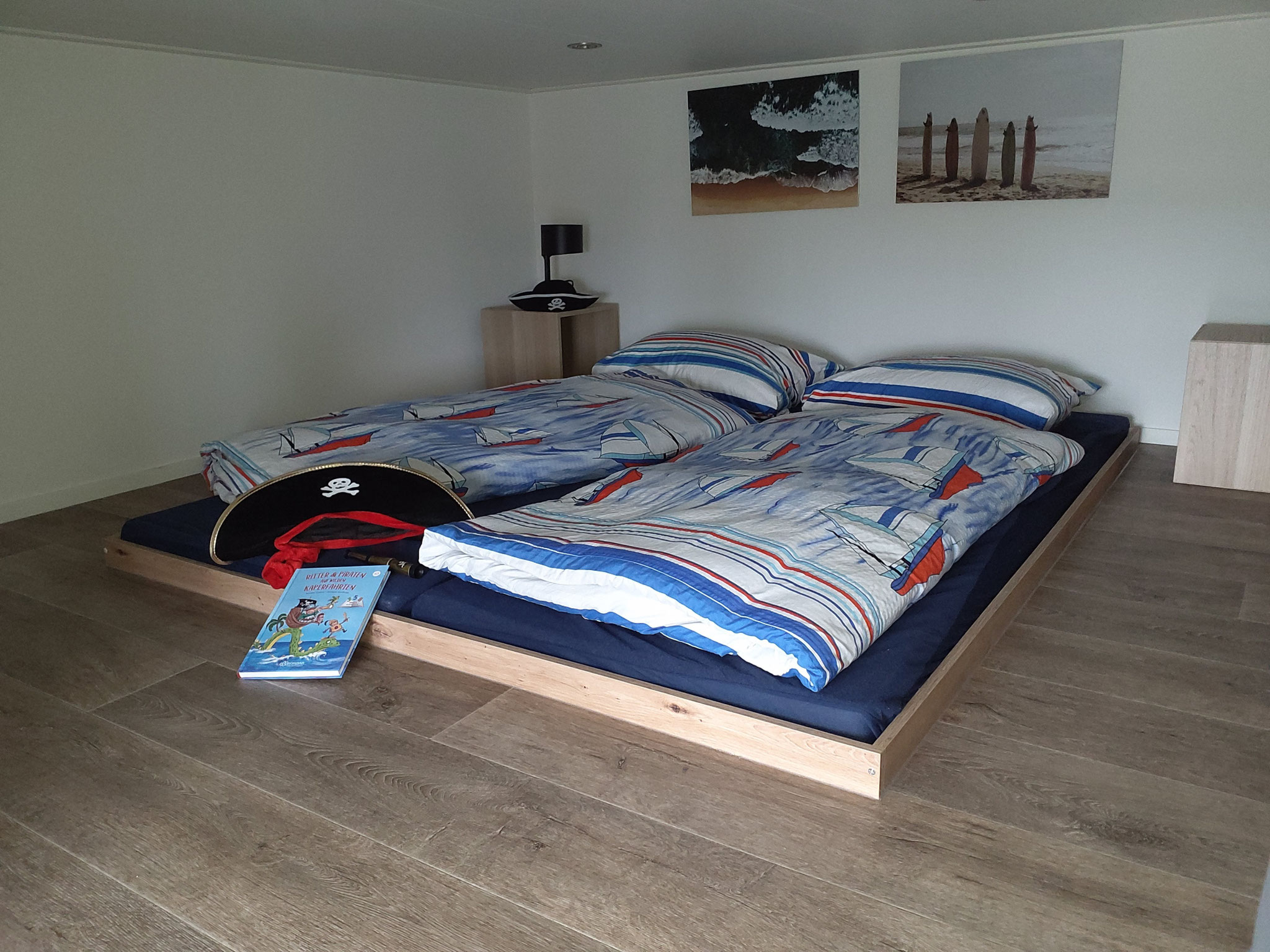 Schlafen 3 besitzt nur eine Stehhöhe von 110cm. Hier ist ein Doppelbett in den Boden eingelassen. Es wird aber gerne von den Kindern als Piratenhöhle genutzt. Hier ist eine separate Klimaanlage installiert.
