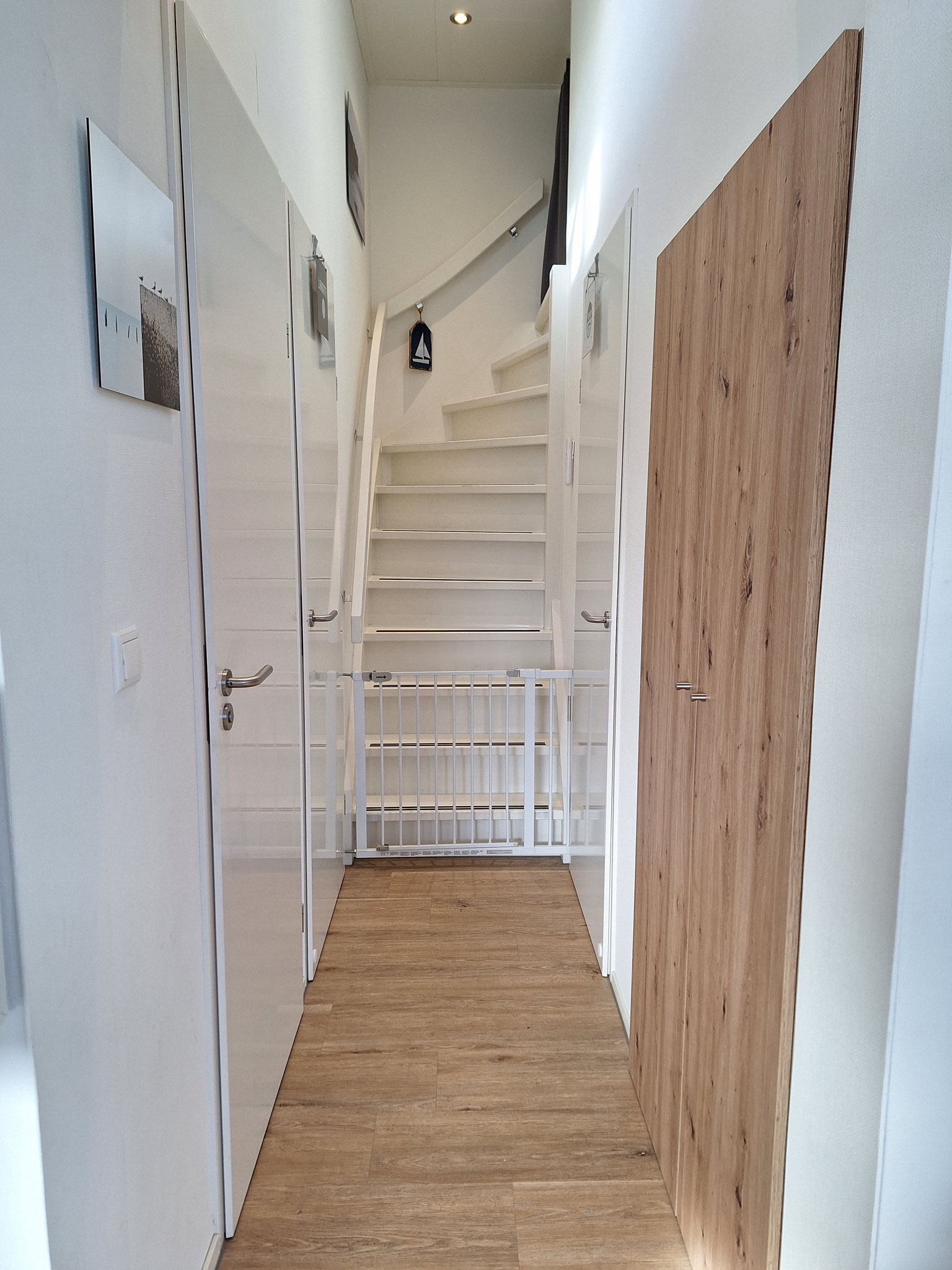 Das 2022 erbaute klimatisierte Nichtraucher-Ferienhaus mit einem eigenen Parkplatz ist für 6 Personen großzügig eingerichtet und ausgestattet. Dafür stehen 3 Schlafzimmer; 2 Bäder mit Regendusche und 2 Toiletten zur Verfügung. Ein lichtdurchfluteter großzügiger offener Wohn-, Ess- und Küchenbereich komplettiert das Innere. Selbstverständlich sind in der Küche alle modernen Elektrogeräte wie Spülmaschine; Herd; Microwelle; Kühl- Gefrierkombination; Toaster usw. vorhanden. Eigenes WLAN in Grundstücksnähe, sowie kostenloses WLAN auf dem gesamten Gelände ist nutzbar. Die mit Garten- und Lounge-Möbel ausgestattete Terrasse vor dem Wohn-Essbereich wirkt durch große Schiebetüren wie eine Erweiterung des Innenbereichs. Ein Grill für BBQ steht zur Verfügung. Die große Dachterrasse mit zusätzlichen Loungemöbeln ermöglicht einen herrlichen Blick auf die Umgebung und aufs Wasser, das nur ein paar Schritte vom Haus entfernt ist. In unserem Haus sind bis zu 2 vierbeinige Freunde willkommen. Dazu ist das Grundstück komplett eingezäunt.